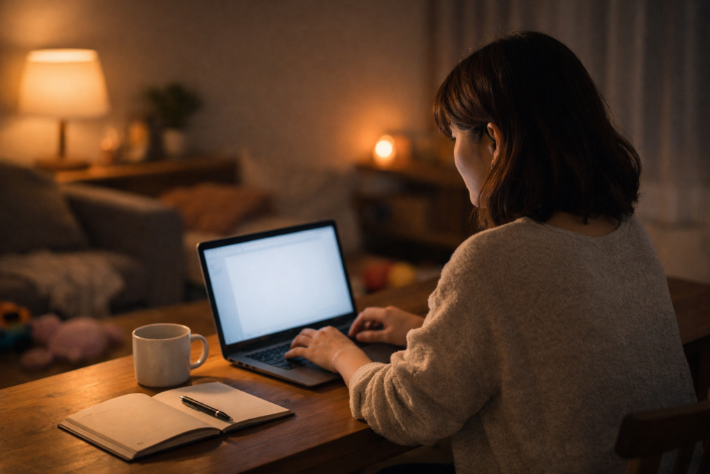 「これ意味あるのかな」と思いながら始めたブログ。 子どもが寝たあとの少しの時間で続けていたら、 気づけば生活の中に小さな変化がありました。 -